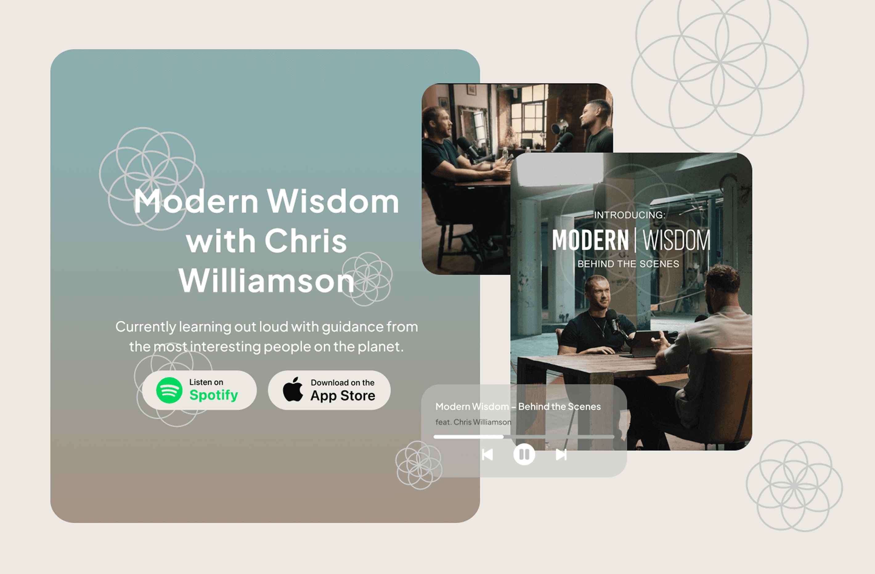 Modern Wisdom, hosted by Chris Williamson, has grown into one of the most influential long-form conversation platforms, exploring psychology, philosophy, health, culture, and modern life through thoughtful dialogue. With hundreds of full-length podcast episodes, weekly newsletters, and short-form insights, the platform offers a depth of content that rewards intentional listening and reflection. As the library continues to expand, the challenge becomes less about access to information and more about how users discover, return to, and meaningfully engage with it. This project reimagines Modern Wisdom as a dedicated mobile experience – designed to support focus, continuity, and long-term learning.