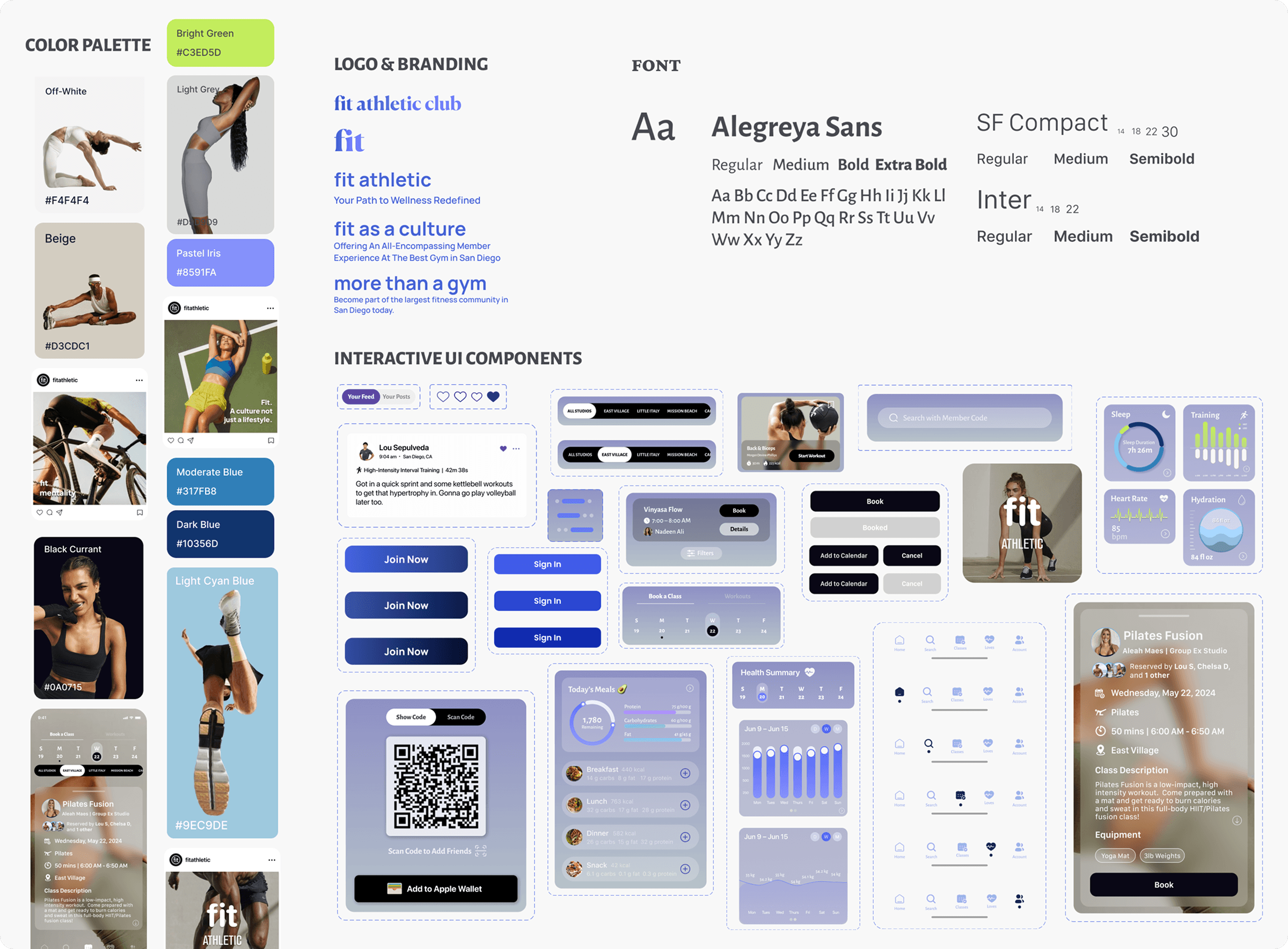 With typography, Inter provides crisp legibility and versatility by ensuring clarity at any size, while its neutral and functional design makes it suitable across interfaces. Alegreya Sans brings a humanist touch, adding warmth and personality to the design, creating a dynamic contrast with Inter. SF Compact is optimized for limited text without compromising readability.