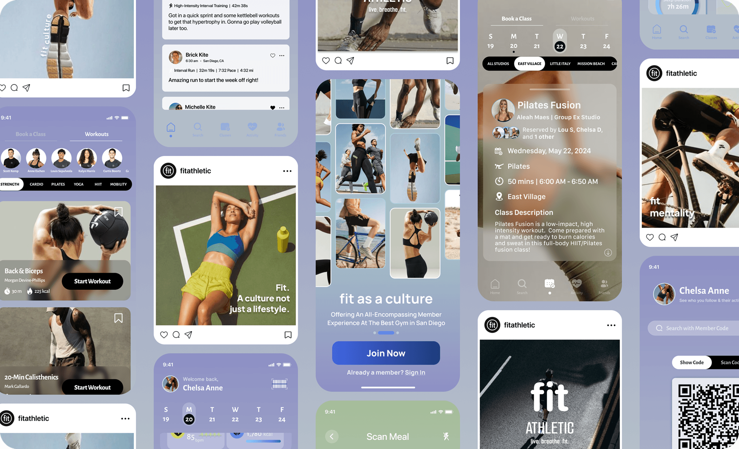 However, early feedback and accessibility considerations revealed key limitations. The stark contrast proved fatiguing for users with sensitive eyesight, and the heavy reliance on white and frosted backgrounds felt visually cold and overly sterile. While cohesive, the palette failed to capture the energy, warmth, and motivation that is the very essence of the Fit Athletic experience.